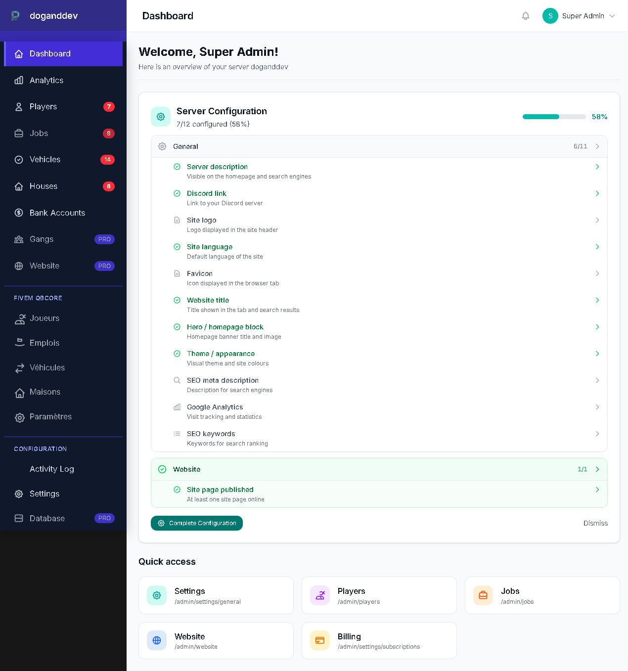 Discover all the features of your roleplay server management panel. Manage your RP community, players, staff and more with professional tools.