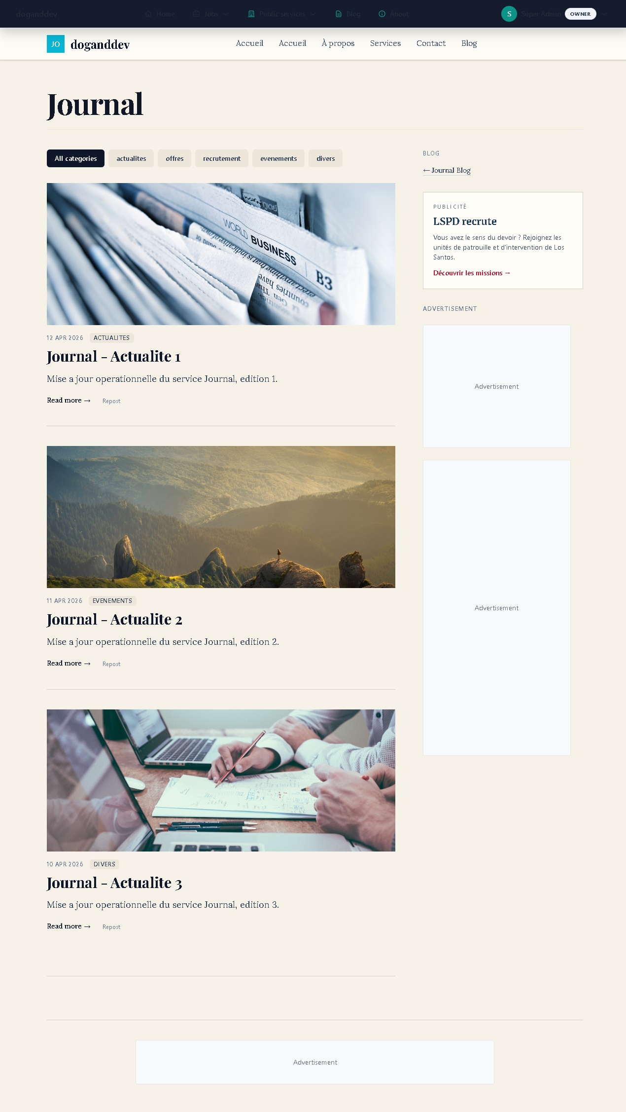 Public portal for citizens: news and role-play.